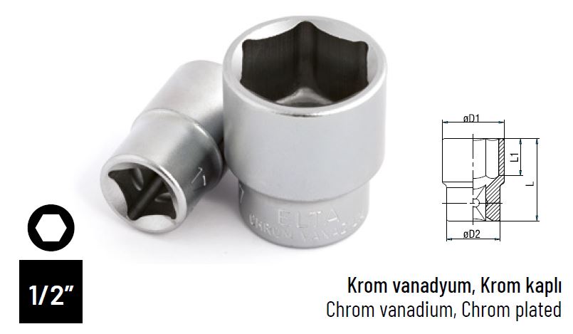 ELTA 1/2″ ALTI KÖŞE LOKMA ANAHTAR 12