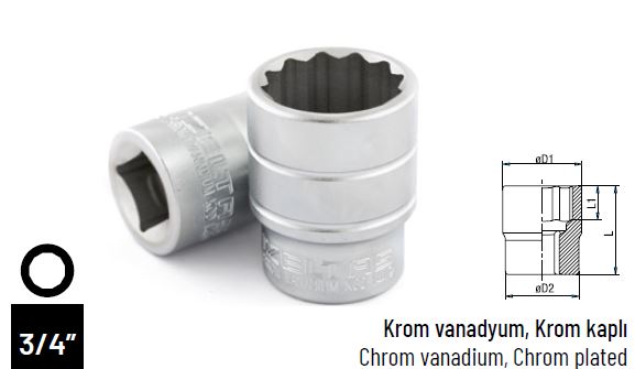 İZELTAŞ 3/4″ ON İKİ KÖŞE LOKMA ANAHTAR 32