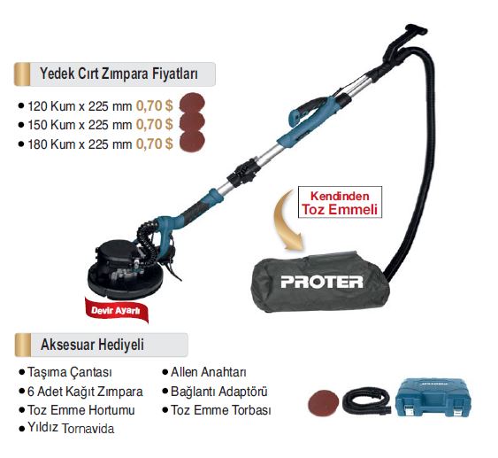 PROTER PR 845 E 850 W 225 MM DUVAR ZIMPARA MAKİNASI
